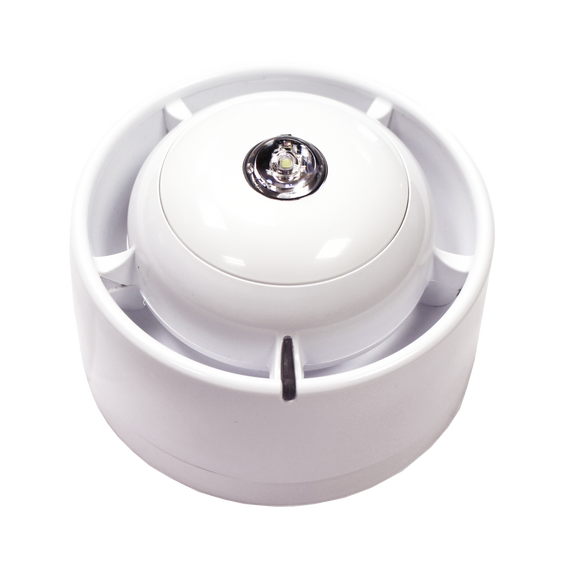 Wireless white sounder with integrated ceiling VAD (white flash) for discreet yet compliant fire alarm signalling.